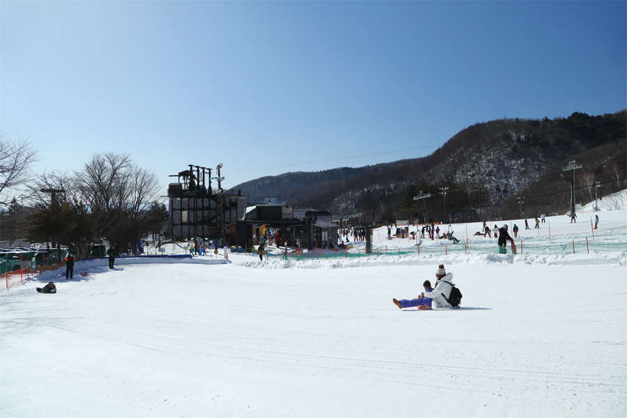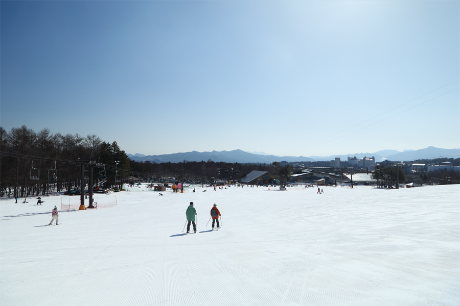 日本一の自然湧出量を誇る一大温泉地、草津温泉を麓に擁する 草津温泉スキー場 は、滑りだけでなく、温泉も観光もアトラクションも満喫できるユニークなスキー場です。天狗山ゲレンデ(写真)はよく締まった”粉雪感のある”湿雪の圧雪。幅広のフラットバーンに大きなシュプールを刻みました。