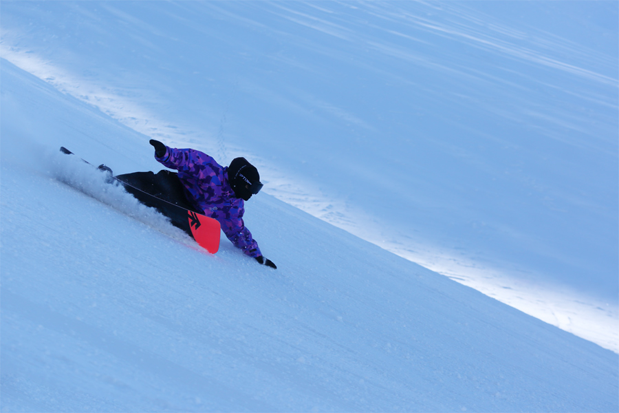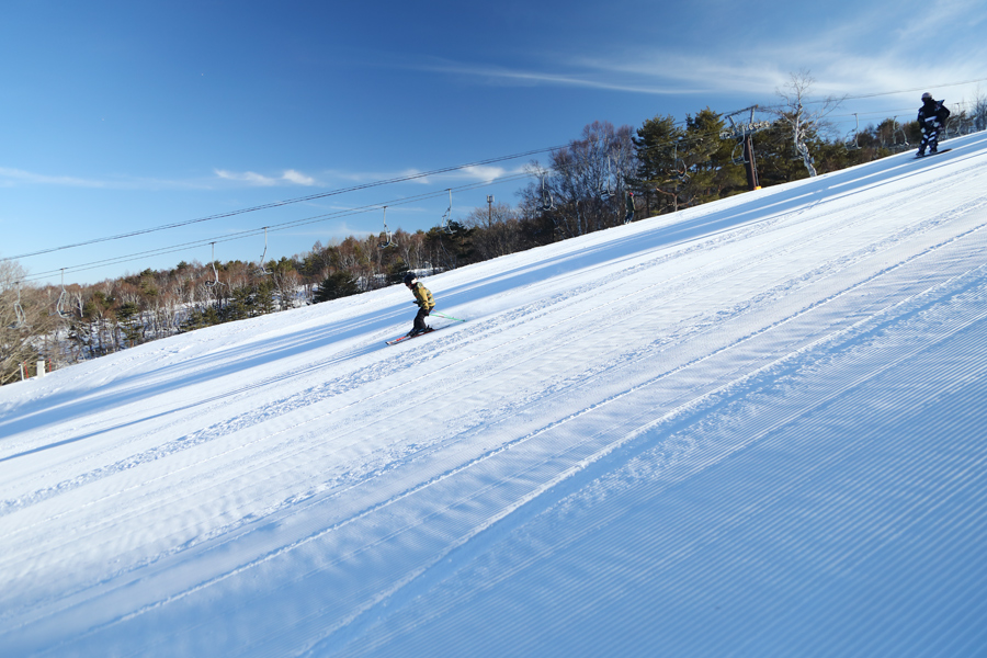 そんな中、一際キレのある滑りを魅せていたのは Gray Snowboards のライダーで レスキューワックス のサポート選手である 川田隼風さん さん(写真)。「ここ数日気温が高かったのでバーンの状態を心配していましたが、圧雪が良くてとても気持ちよく滑れています。」とお話くださいました。
