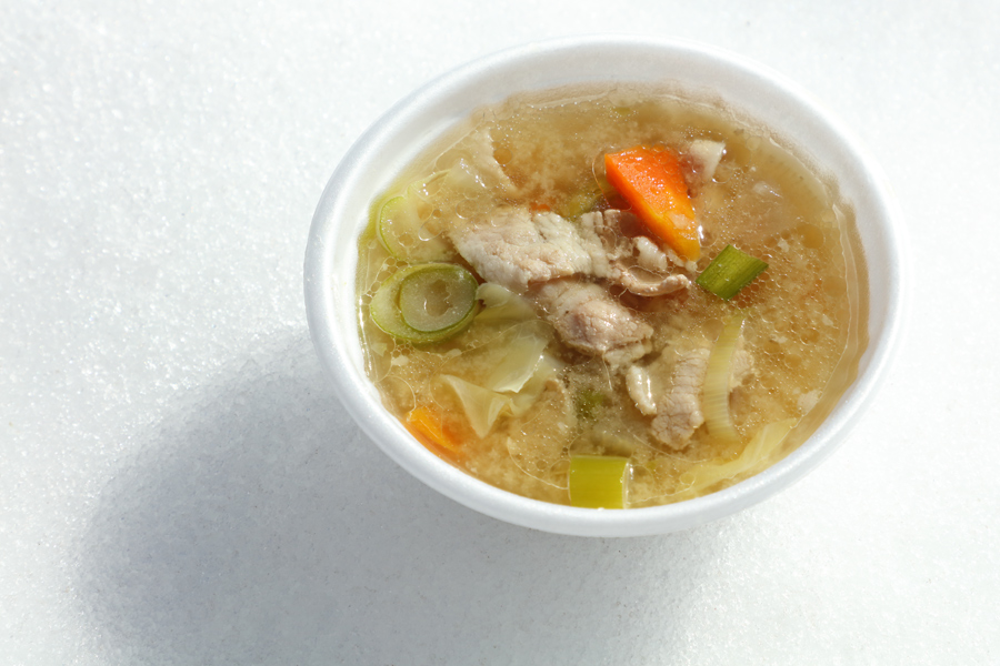 大鍋で2杯分あった豚汁(写真)は10時開始から1時間足らずで約150名の方に配られました。豚肉、ニンジン、ジャガイモ、長ネギ、大根、玉ネギ、蒟蒻、しめじ、ゴボウが入った具沢山の豚汁はとても美味しかったです。穏やかで暖かな天気に恵まれて、ゆっくり食べることができました。