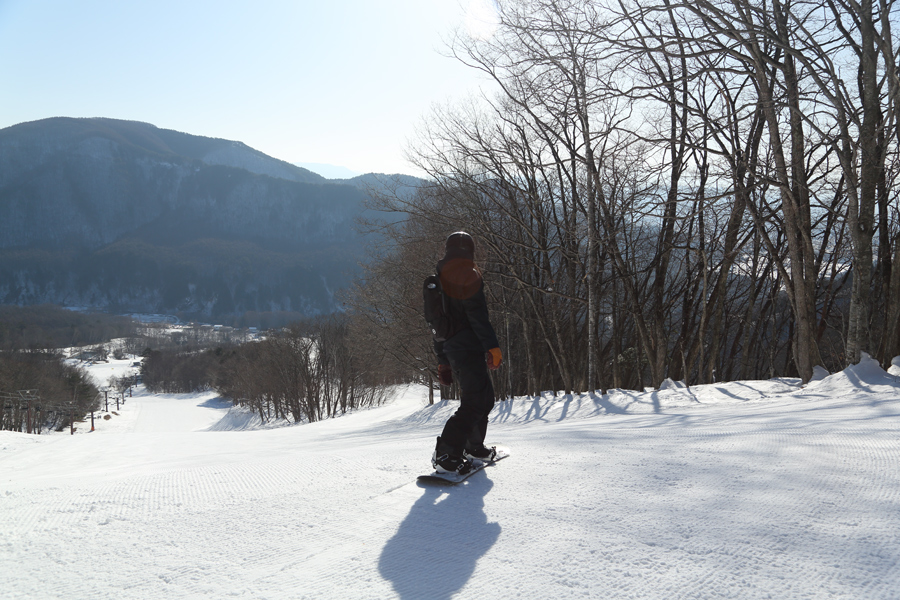 早いもので今シーズンも最終営業日の3/15(日)まで1ヶ月足らずとなりました。3/2(月)からは1日券の春割が始まります。穏やかな快晴のもと東京都からのスノーボーダーさん(写真)が「大町市に泊まって一昨日から つがいけ、五竜47 と滑っています。今日は安曇野ICに近い爺ガ岳で半日滑って帰ります。」とお話しくださいました。