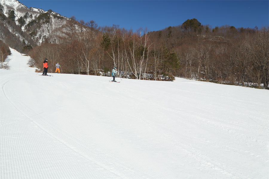雷鳥コース(写真1枚目)は適度に締まったザラメ雪の圧雪、ラビットコースとエコーゲレンデ(写真)は適度に緩んだザラメ雪の圧雪。ところで、2/21(土)~2/23(月祝)の3日間、早朝特別営業 が行われ、第1ペアが7時半から動き出します。また、同日に Bakery’s Kitchen ohana北アルプス店 のスペシャルモーニングが無料提供されます!(※200セット限定)