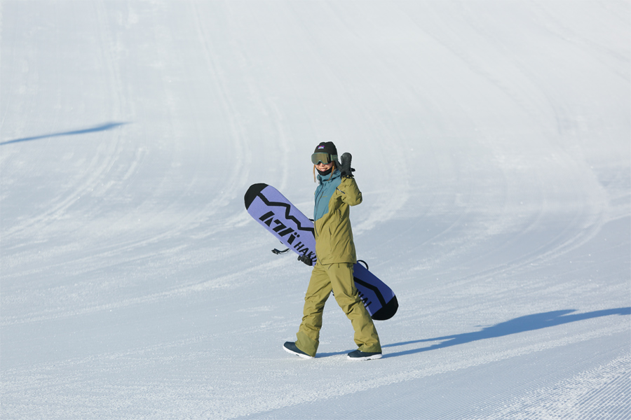 営業開始前に白馬村在住のスノーボーダーさん(写真)が「いつも見てます。今日は霧氷と青空がきれいですね。さのさかには良くコソ練しに来ます。」とお声掛けくださいました。ちょ、ちょっと待ってください!手にお持ちなのはふるさと納税で買えるスノーボードカバーじゃないですか?「あの、密着取材させてもらっても良いですか?」