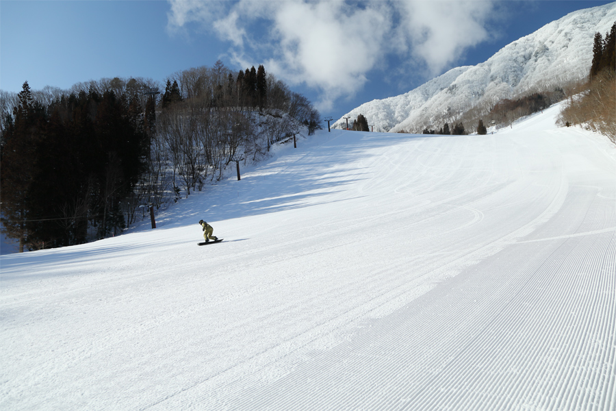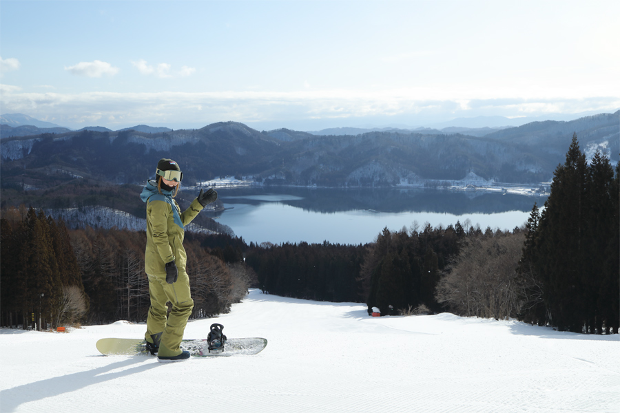 また、Aさんが「リフト券は『ハクバ・カード』で滑りに行く日にチャージしています。リフト券が結構安く買えていいですよ。白馬さのさかなら500円引、岩岳は700円引、五竜47は1,300円引、八方は300円引になります。」とお話しくださいました。こんな清々しい朝は北アルプスの眺めはもちろん、青木湖の眺めも最高です!