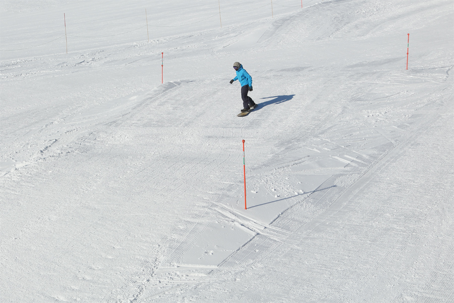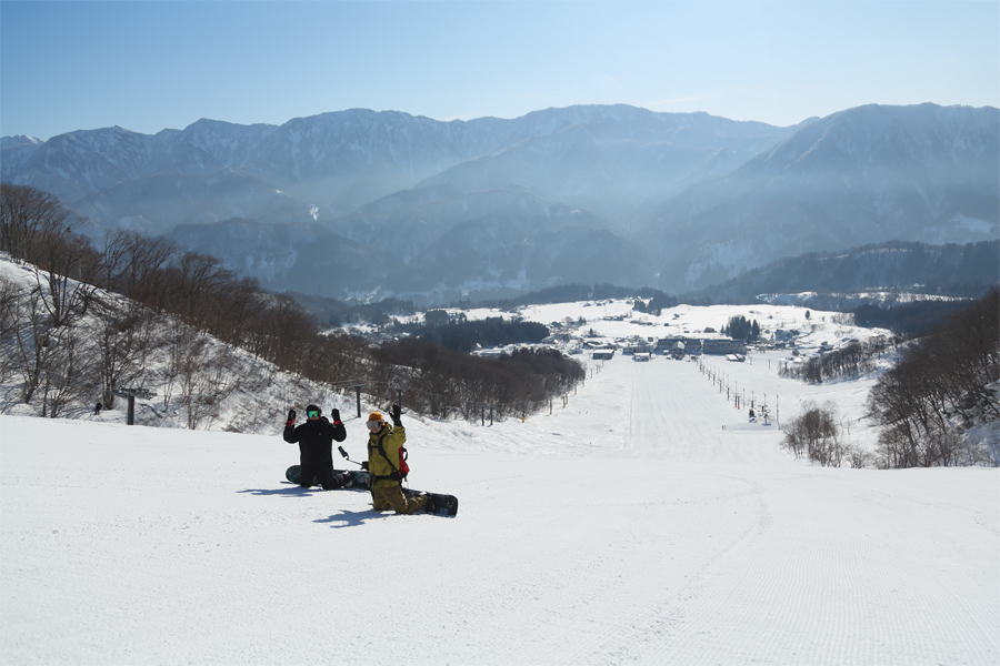 昨日に続いて穏やかな晴天に。白馬村在住のお2人(写真)が「いつも見てます。クロスコースで遊びたくてハクノリにやって来ました。クロスコースはもちろん圧雪バーンも良く整備されて滑りやすいですね。」とお話しくださいました。ラビットコース(写真)は良く締まった湿雪の圧雪でした。
