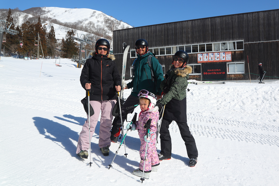 「3歳の娘が滑れようになって楽しいみたいです。父、母と祖母の3人がかりでこの娘をアテンドしていますw」とはオーストラリアからのご家族(写真、お嬢ちゃん、ウインクありがとう)。2/23(月祝)には前回1/25(日)も好評だった「あんこう吊るし切り」がスノードロップ前で行われます。