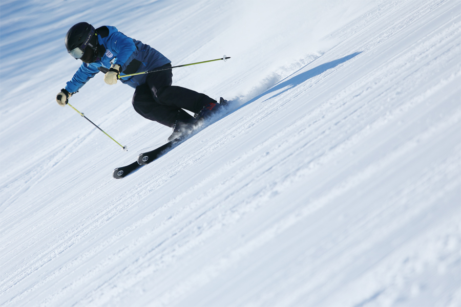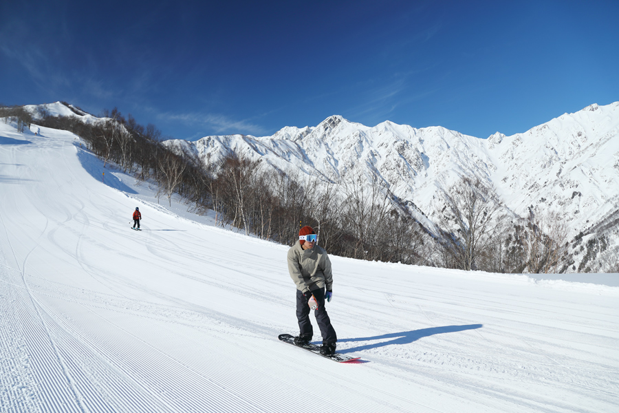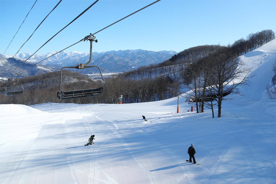 ゴンドラ Line-8 を降りて雪面を歩くとキュルキュルと鳴る粉雪に滑る前からテンションが上がりました。ルート8(写真)は適度に締まった粉雪の圧雪。景色を眺めながら Line-E 降り場から Line-8 山頂駅までの全長2.8kmを気持ち良く滑りました。