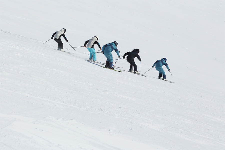 そして最終日の2/28(土)には「団体演技」と「オープンMix」が行われます。団体演技はご覧のように複数人の選手がチームを組んで1つのフォーメーションを維持しながら滑走し、揃った演技を披露するもの。「オープンMix」は男子2名と女子2名の計4名で行う団体演技です。穏やかな晴天のもと朝方のかもしかは適度に締まった粉雪の圧雪でした。
