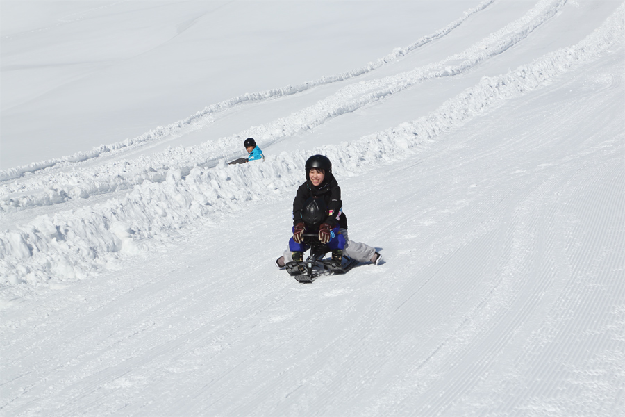 3連休らしい人出となり、ポケモンスノーアドベンチャー(写真)も9時のオープンと同時に賑わい出しました。「ポケモンスノーアドベンチャー を子供たちが気に入っていて良く来ています。僕は子供たちのソリと一緒に走るので暑いです。」とは埼玉県からのお父さん。チューブもソリも良く走るコンディションでした。