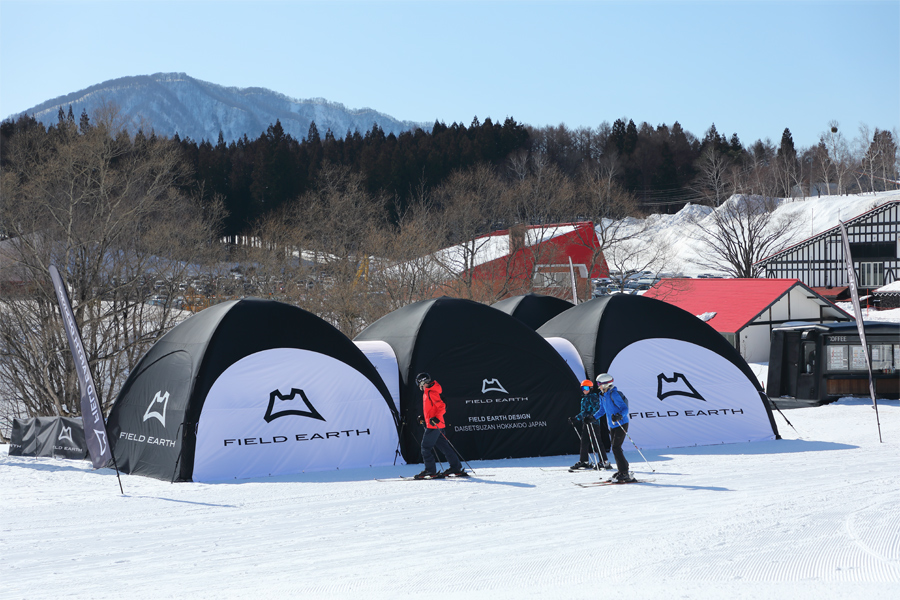 池の田ゲレンデベースでは、今日と明日に「FIELD EARTH MEETING IN CORTINA」が、2/23(月祝)に「FIELD EARTH RIDING MEETING CORTINA」が行われます。ブランド代表の方が「白馬でのイベントは7年ぶりで、事前申込された方限定の試乗会とセッションのイベントです。是非、弊社WEBサイト、SNSをフォローいただき、次回ご参加ください。」とお話しくださいました。