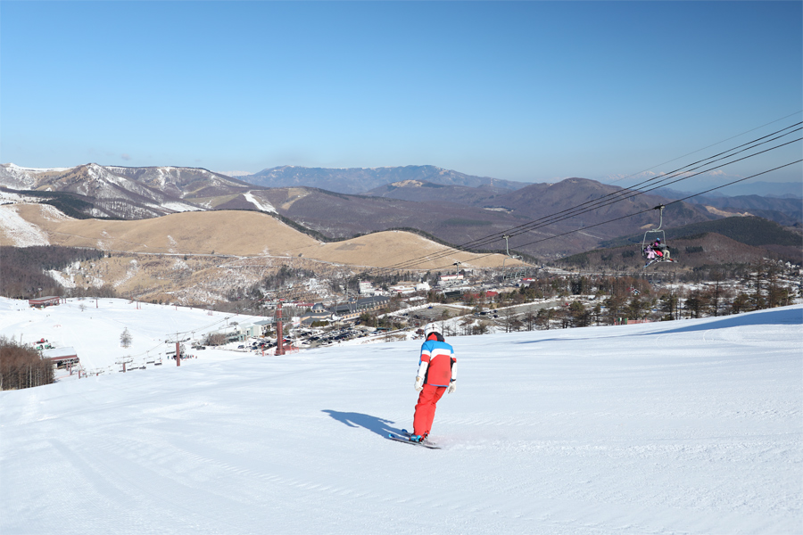 2月の3連休は初日も中日も 白樺湖ロイヤルヒル には真っ青な空が広がりました!強い日差しに加えて時々強く吹く南風にも暖かさを感じる朝。適度に締まった湿雪の圧雪の雷鳥コース(写真)とアルペンコースでは、エッジがしっかりと噛み込み思い通りのターンを繰り返せました。