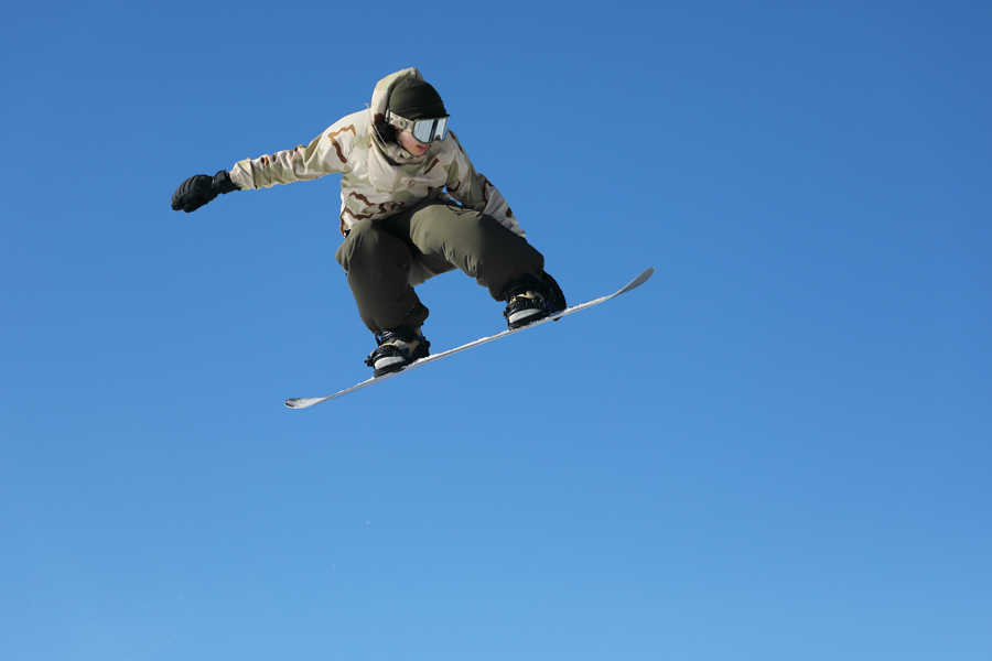 雷鳥コース終盤にある「Park1」にはレールとBOX&レール、アルペンコース序盤にある「Park2」にはレール、BOX&レール、塩ビレール、3mキッカーが設置されています。Park2の3mキッカーでは、グラブやスピンを入れた高さのあるジャンプを繰り出す上級者が見られました(写真)。
