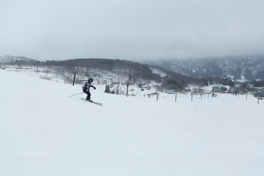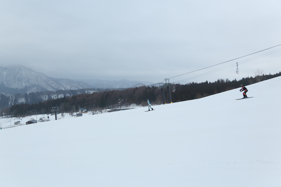 リフト上から声を掛けてくださった京都府からのお2人(写真)が「いつも見てます。同じスキーチームに所属して、金曜日から滑っています。今日は板が良く走って滑りやすいですね。」とお話しくださいました。里見中央ゲレンデも適度に緩んだザラメ雪の圧雪でした。