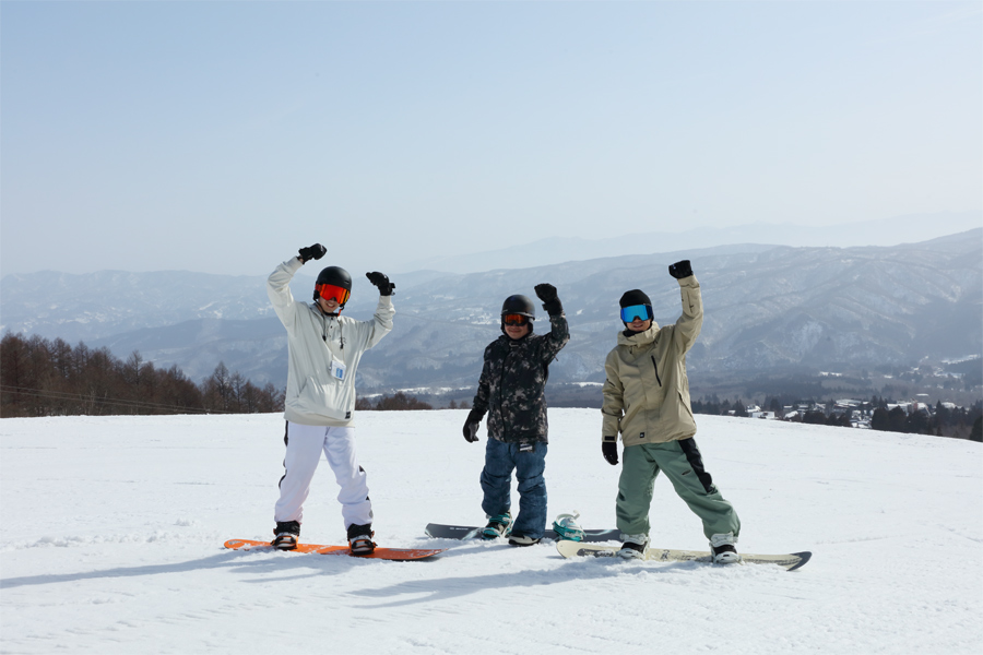 埼玉県からの3名様(写真)が「いつも見てます!赤倉温泉は雪質が良くて、広くて、空いてもいるので気に入っています。ゲレンデレポートはスキー場選びの参考にしています。嬬恋と舞子にも行って来ましたよ。」とお話くださいました。10時頃に滑ったザラメ雪の圧雪のダウンヒル中央コース(写真)は表面が緩み始めていました。