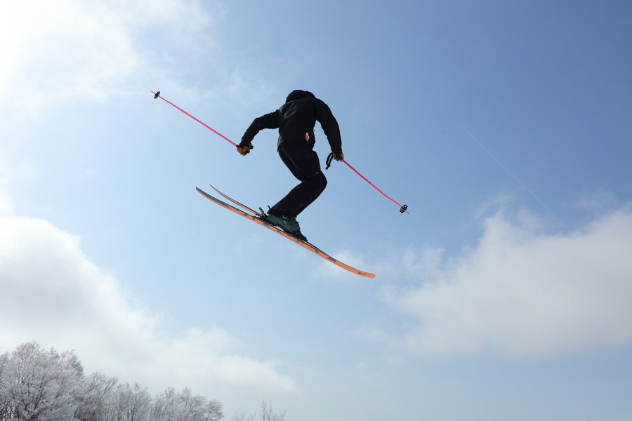 マウンテンサイドでは各圧雪バーンだけでなく、Iwatake Snow Park もきれいに整備されていました。目下 8mキッカー、6mキッカー、ダウンレール、フラットダウンレール、ナローボックス、ミニキッカー、3mキッカー、6mキッカー、ドンキーレール、フラットレール、ボックス、レインボーレール、ワイドレール、エンドウォールの計14アイテム。8mキッカー(写真)では高いジャンプやグラブを入れるシーンも見られました。