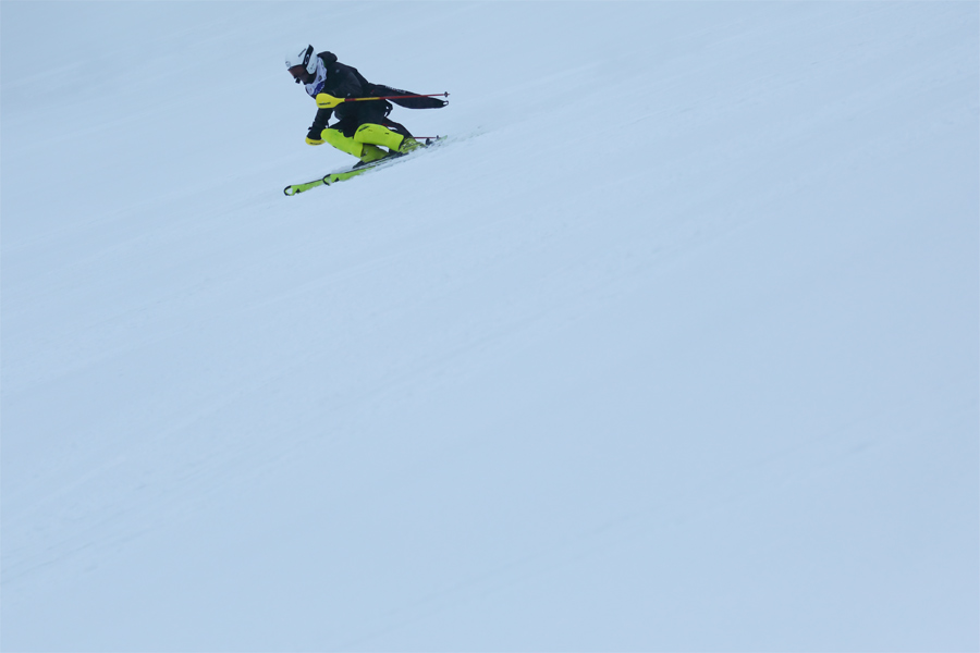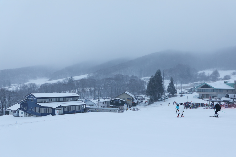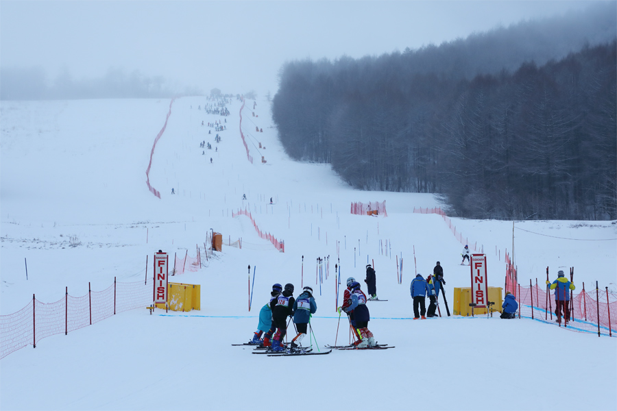 しっとりとした新雪が3~5cm乗った大松山GOの原と大松山ファミリー(写真)はザクザクと柔らかなザラメ雪の圧雪でした。エッジが深くまで入りましたが板の走りが良くて滑りやすく、ウォーミングアップする選手がハイスピードで回す姿が印象に残りました。