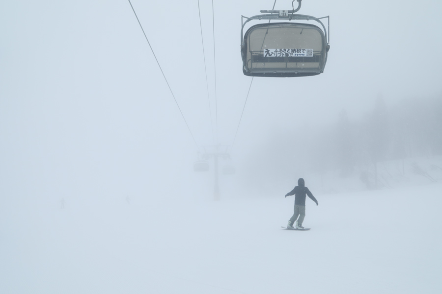 寒気が流入した今朝は、やまびこゲレンデに軽い新雪が1~5cm積もりました。やまびこゲレンデ・Dコースは粉雪(!)でしたが、濃いガスで視界が真っ白。”粉雪感のある”湿雪の圧雪の上ノ平ゲレンデ、湿雪とザラメ雪が混ざった硬めの圧雪のパラダイスゲレンデ、林間コースと滑って日影ゲレンデ(写真)まで滑り降りて来ました。