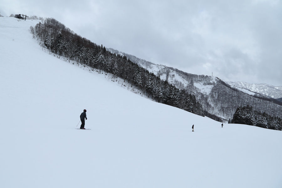 プロキオン(写真)とレグルスは硬めの湿雪の圧雪。お会いしたスキーヤーさんが滑りながらに「いつも見てまーす!」と声を掛けてくださいました。レグルス序盤のスキーヤーズライトにできたバンクドスラロームコースでは3/22(日)に「BANKED SALOMON」が開催されます。