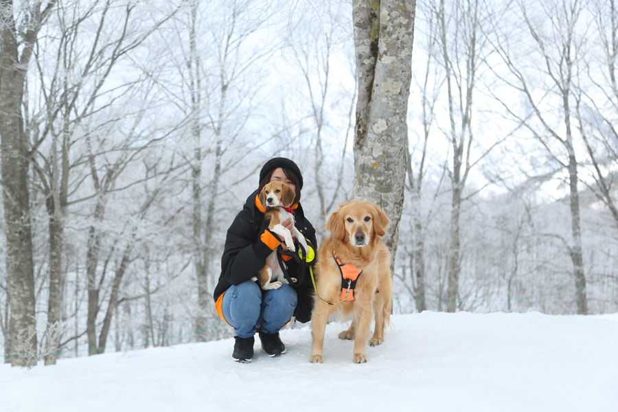 IWATAKE WHITE PARK のドッグランで愛犬と遊ばれていた福島県からの女性(写真)が「岩岳でこの子たちを遊ばせたくて、新潟県経由でやって来ました。」とお話しくださいました。週末ともあって HAKUBA MOUNTAIN HARBOR とその周辺は観光目的の来場者を中心に盛況でした。