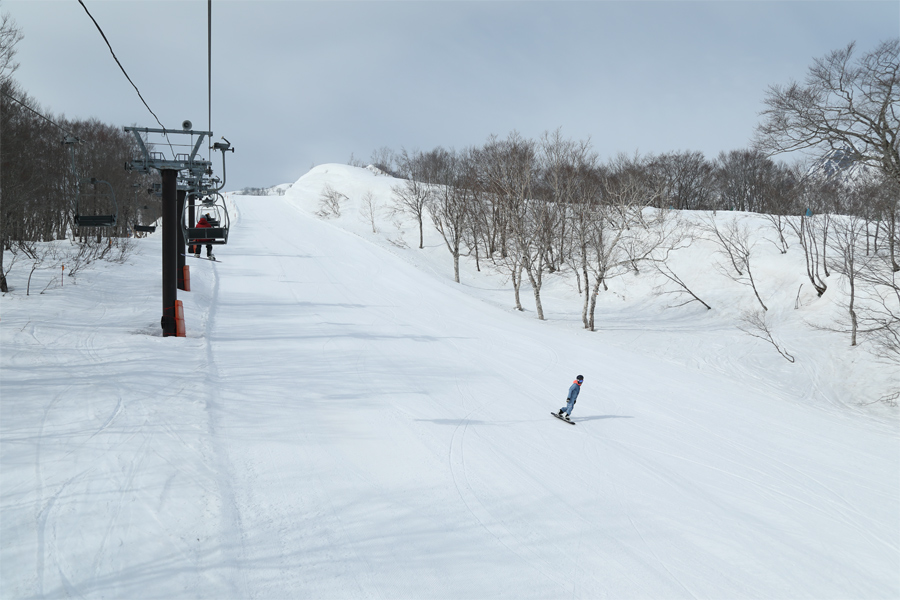 3/22(日)でミルキーフォーリフトが終了し、パウダースノー、ソフトクリーム両コースがクローズして、いいもりゲレンデの今季営業が終わりました。3/23(月)以降に滑れるのはよんななの全コース=8コースと、五竜の8コースの計16コース。薄雲を通して弱い日差しが感じられる穏やかな朝となりました。