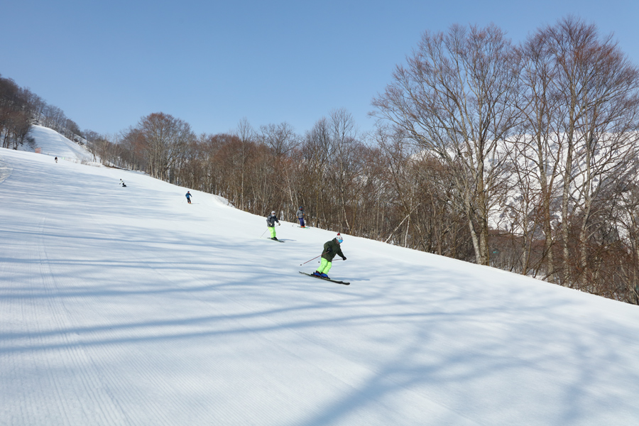ルート6(写真)とルート7は、朝方はルート5と同様に良く締まったザラメ雪の圧雪でしたが、1時間もすると緩んで来ました。ルート1下部は緩んだザラメ雪の圧雪。ルート7下部は後半部分がクローズしたため、初級者の方にはゴンドラ下山をおすすめします。