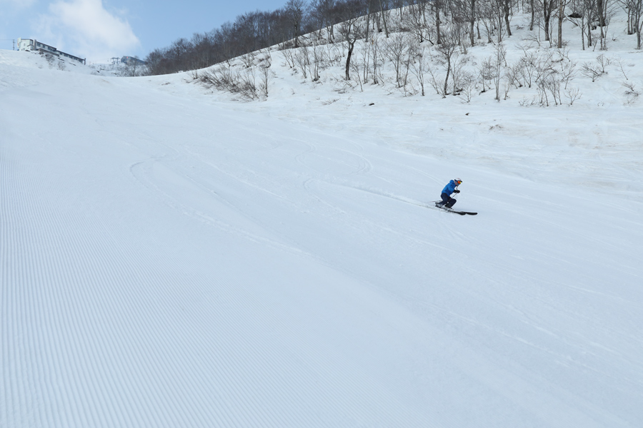 シャラッとしたザラメ雪の圧雪のスカイラインコース(写真)は滑り降りるほどにシャラシャラになりました。ところで、今週末4/3(金)~4/5(日)にはうさぎ平テラス周辺で「BLASTRACK & OGASAKA SKI 26-27 NEW MODEL TEST RIDE」が、4/5(日)には「HAPPO-ONE SPRING FESTIVAL 2026」が行われます!