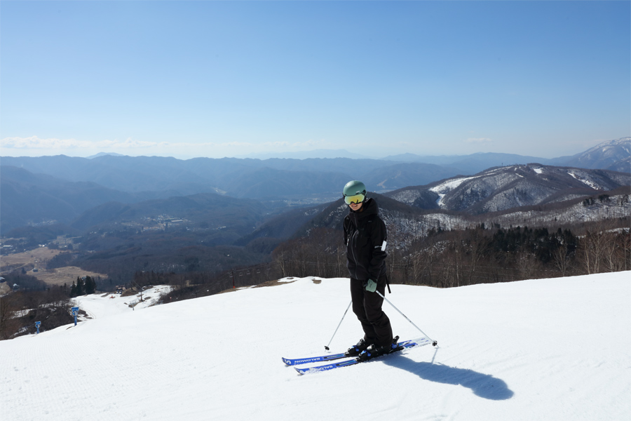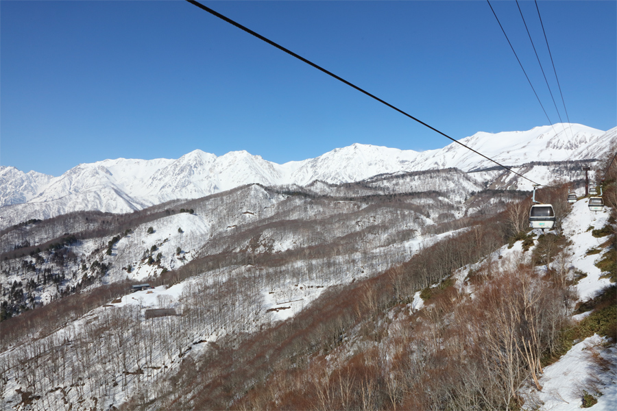 昨夕から昨晩にかけて山上でも麓でも雪が降ったことで、北アルプスやゲレンデ、周囲の景色の白さが増していました(写真)。高気圧に覆われた今朝は穏やかな晴天に。ゴンドラを降りるとザラメ雪ながら締まった雪面の感触に気分が上がりました。