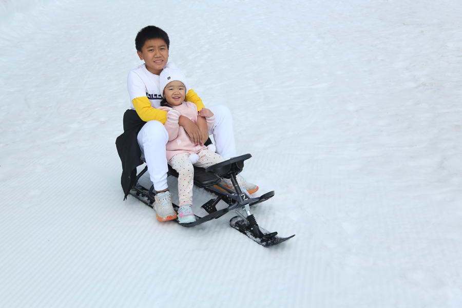 タイからのガイドさんが「30名ほどで来場しました。タイでは雪が降らないので、皆さんとても喜んでおられます。」とお話しくださいました。SNOWアクティビティWOW! で借りたソリで遊んでいたご兄妹(写真)が、覚えたて日本語で「楽しい!楽しい!」と笑顔で応えてくれました。