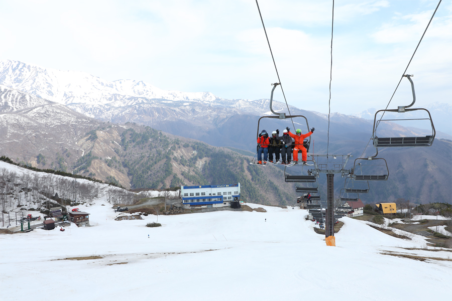 白馬八方尾根スキー場 が今シーズン最後の週末を迎えました。「今シーズンもありがとう!来シーズンもよろしく!」とは黒菱第2クワッド乗車中の4名様(写真)。また、別の男性が「昨朝と比べても、明らかに雪が少なくなっていますね。」とお話しくださいました。