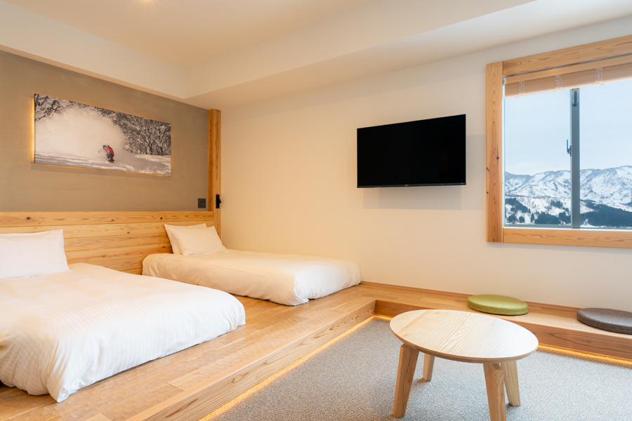 舞子スノーリゾート にスキーイン・アウト出来るリゾートホテル。スーペリアツイン(写真)など5タイプある客室からは、昼は白銀のゲレンデや魚沼平野を、夜はナイターの灯る幻想的な雪景色を望むことができます。大浴場「飯士の湯」には弱アルカリ性の天然温泉「舞子温泉」とオープンジャグジー。魚沼産コシヒカリ、日本海の鮮魚をはじめ越後の旬の食材を使ったビュッフェは幅広い層に好評です。